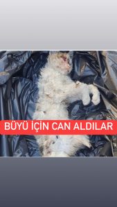 İddiaya göre büyücülerin büyü yapmak İÇİN kedi Patisi istemesi sonucu kedilerin hedef alındığı belirtildi.Ayakları kesilmiş ve gözleri oyulmuş bir şekilde kedileri gören veteriner şoka uğradı.Vatandaşlar ve veteriner hekimler sorumluların bulunarak cezalandırılmasını istiyor